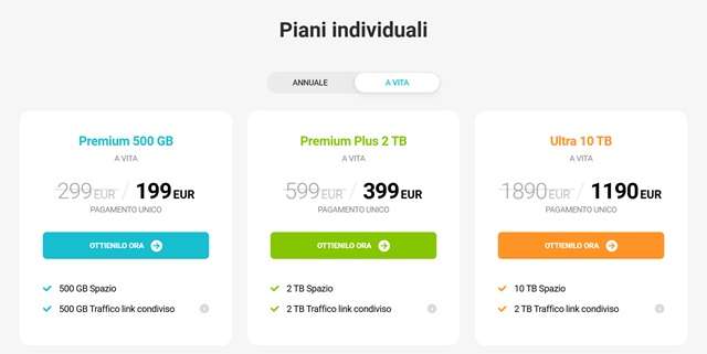I dettagli completi dell’offerta sui piani individuali a vita sono disponibili a questa pagina del sito pCloud.