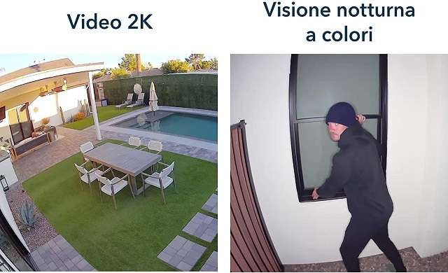 La telecamera presenta una torcia che consente di illuminare fino a 7 metri con una luce da 3000 lumen. La sua installazione è rapida e immediata, grazie alla possibilità di utilizzare la batteria incorporata che può essere ricaricata tramite la normale corrente domestica o tramite il pannello solare incorporato nel kit. È anche l’unica videocamera con sensore da 2K e zoom 12x sui dettagli importanti ed è dotata di visone notturna in bianco e nero o a colori.