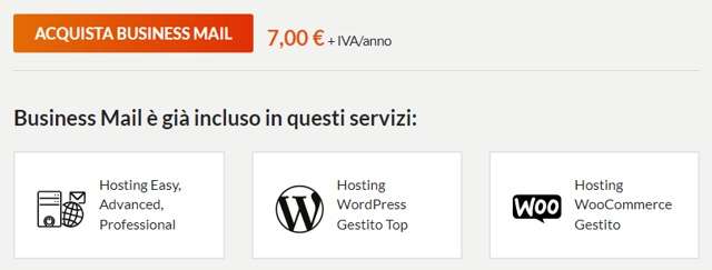 La sua vocazione è tutta nel suo nome: la “Business Mail” è infatti una casella di posta elettronica pensata specificatamente per aziende, professionisti e Partite Iva che dall’email pretendono qualcosa di più, per usi più evoluti. Il prezzo è minimo: 7 euro/anno+iva, un’inezia che riversa però tutta una serie di vantaggi per rendere l’email qualcosa di ben più potente ed affidabile.