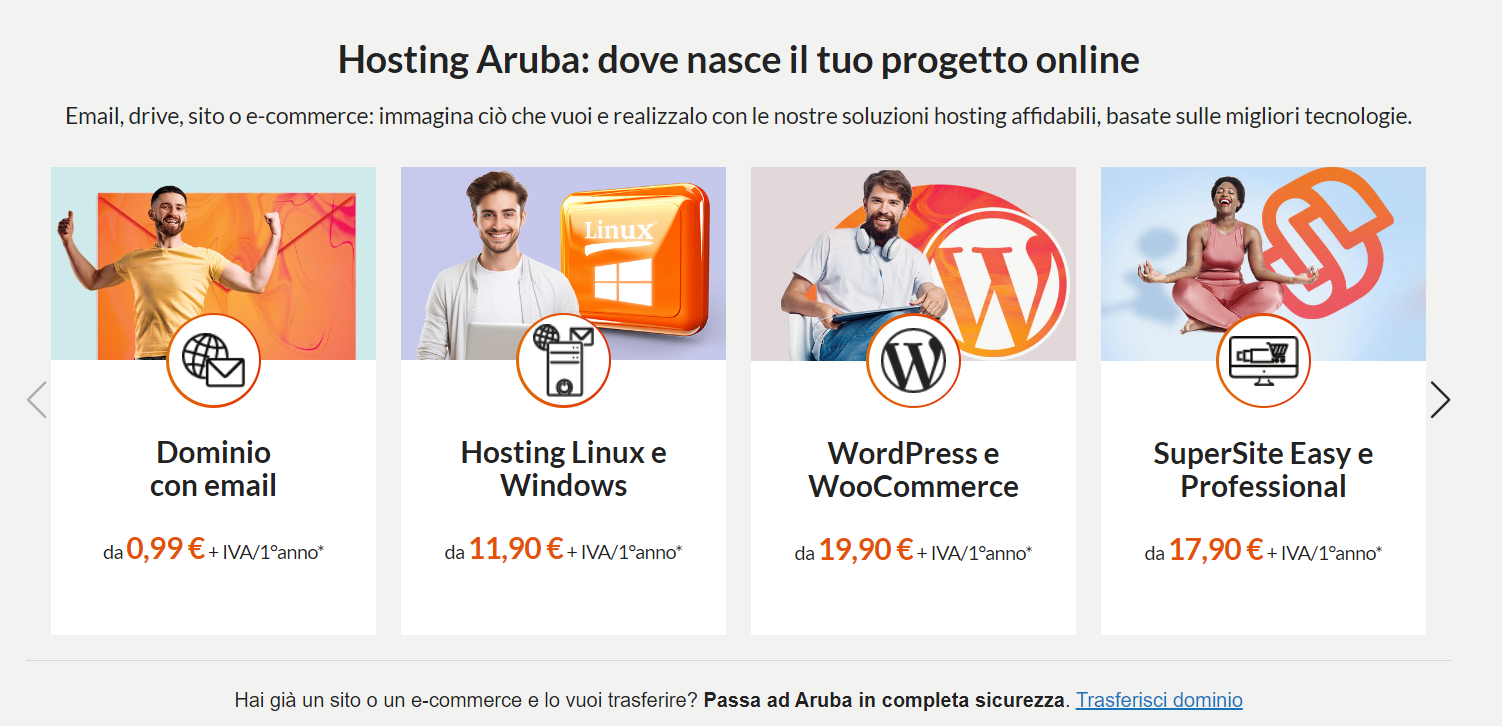 In tal senso, ti consigliamo Aruba Hosting, un servizio con diverse funzionalità in grado di soddisfare tutte le tue esigenze. Continua a leggere per scoprire alcuni prodotti di punta a prezzo più che vantaggioso.