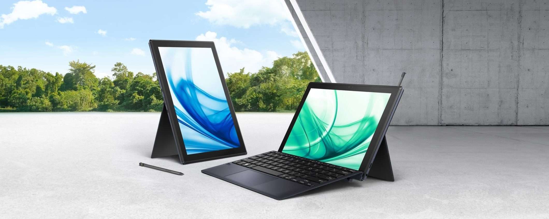 Il nuovo ASUS ExpertBook B3 Detachable può essere utilizzato in condizioni ambientali estreme, come conferma la certificazione MIL-STD-810H. Grazie al cavalletto posteriore è possibile posizionarlo in verticale e orizzontale. È presente l’alloggiamento per la stilo che permette la ricarica. Lo schermo da 10,5 pollici ha una risoluzione WUXGA (1920×1200 pixel).