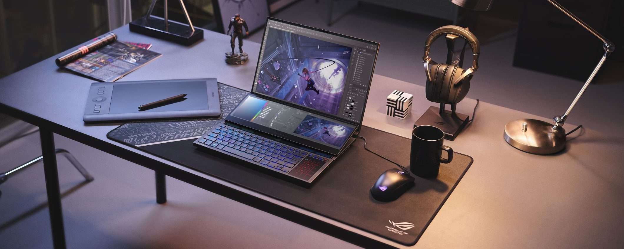 Il ROG Zephyrus Duo 16, presentato al CES 2022 di Las Vegas, possiede uno schermo principale Nebula Dual Spec da 16 pollici che può passare dalla risoluzione 4K (3840×2400 pixel, 120 Hz) a full HD (1920×1200 pixel, 240 Hz) e viceversa. Lo schermo secondario touch ScreenPad Plus da 14,1 pollici (3840×1100 pixel) può essere sollevato e fatto scorrere verso il display principale.
