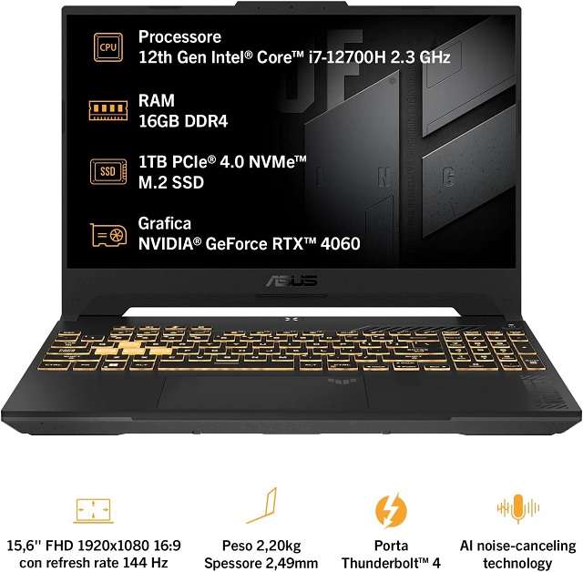 Notebook da gaming ASUS TUF F15: caratteristiche tecniche principali