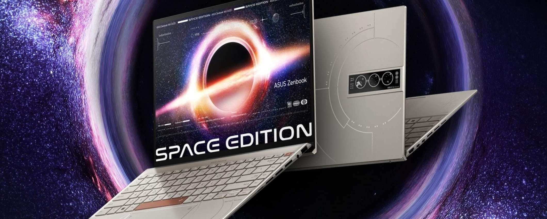 Lo Zenbook 14X OLED Space Edition ha un telaio color titanio con una serie di disegni ispirati allo spazio. Sulla cover è presente uno schermo OLED monocromatico da 3,5 pollici (ZenVision) che mostra varie informazioni, tra cui il livello della batteria. Utilizzando un tool specifico è possibile anche visualizzare animazioni e messaggi. Oltre alla certificazione MIL-STD-810H, il notebook ha ricevuto la certificazione US Space Systems Command Standard (SMC-S-016A), quindi può resistere a vibrazioni e temperature estreme.