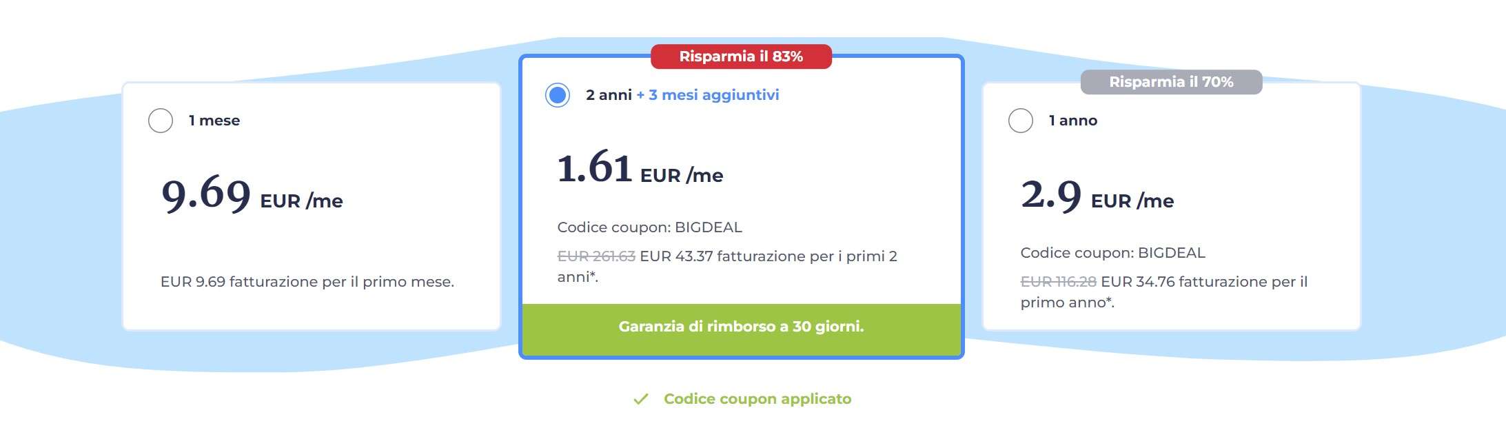 AtlasVPN presenta un costo di 1,61 euro al mese e, quindi, di appena 5 centesimi al giorno attivando il piano biennale, scontato dell’83% e caratterizzato dall’aggiunta di 3 mesi gratis, per una spesa complessiva di circa 43 euro. Per accedere all’offerta è possibile consultare il link qui di seguito: