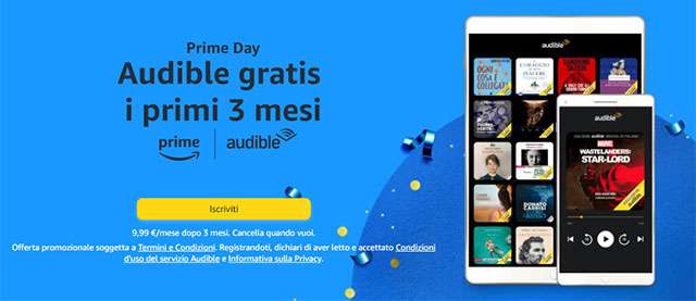 Per scaldare i motori in vista del Prime Day ormai quasi alle porte (l’evento è in programma per l’11 e 12 luglio), Amazon permette oggi agli utenti Prime di ottenere tre mesi di abbonamento gratis al servizio Audible, per l’ascolto degli audiolibri e non solo. Per capire se si è eleggibili alla promozione non bisogna far altro che visitare la pagina dedicata.