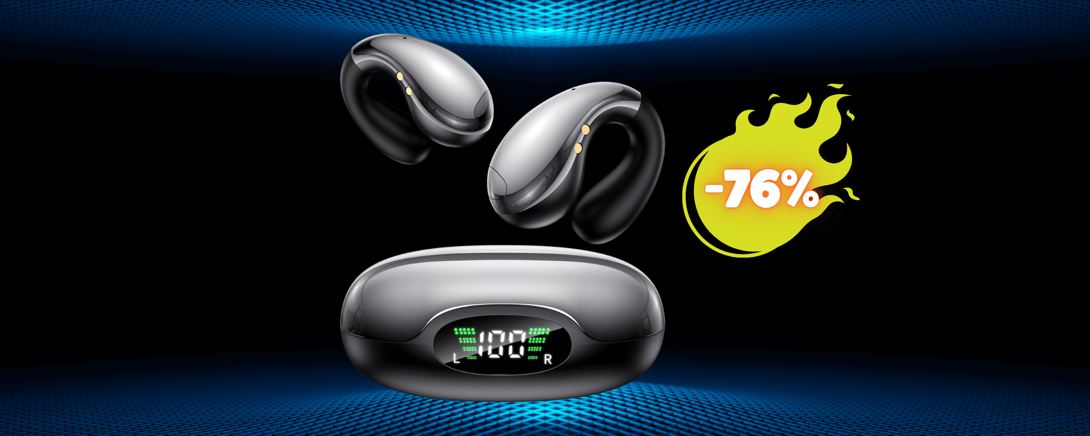 Collegati su Amazon per mettere alla prova questi auricolari Bluetooth Open Ear con traduttore simultaneo. Le acquisti a soli 47,48€ con lo sconto del 76%.