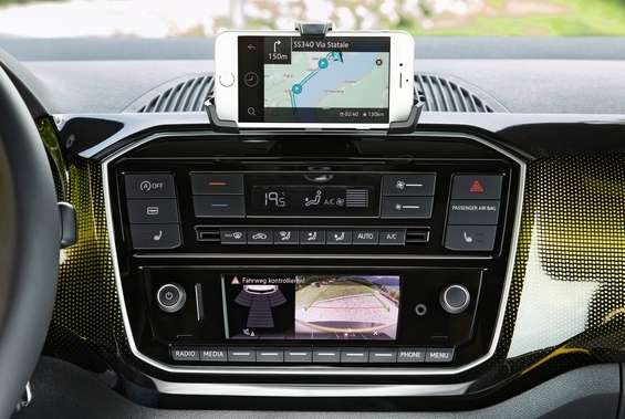 Per le utilitarie come la VW up, la tecnologia per rendere connesse questo segmento di auto è ancora costosa. Il prezzo base di questo modello è 9.850 euro e, per la maggior parte dei clienti, lo schermo del navigatore integrato nel cruscotto richiede un prezzo troppo elevato. Volkswagen risolve il problema, ricorrendo allo schermo dello smartphone, su cui potranno essere visualizzati anche dati relativi al veicolo, come numero di giri e consumi.