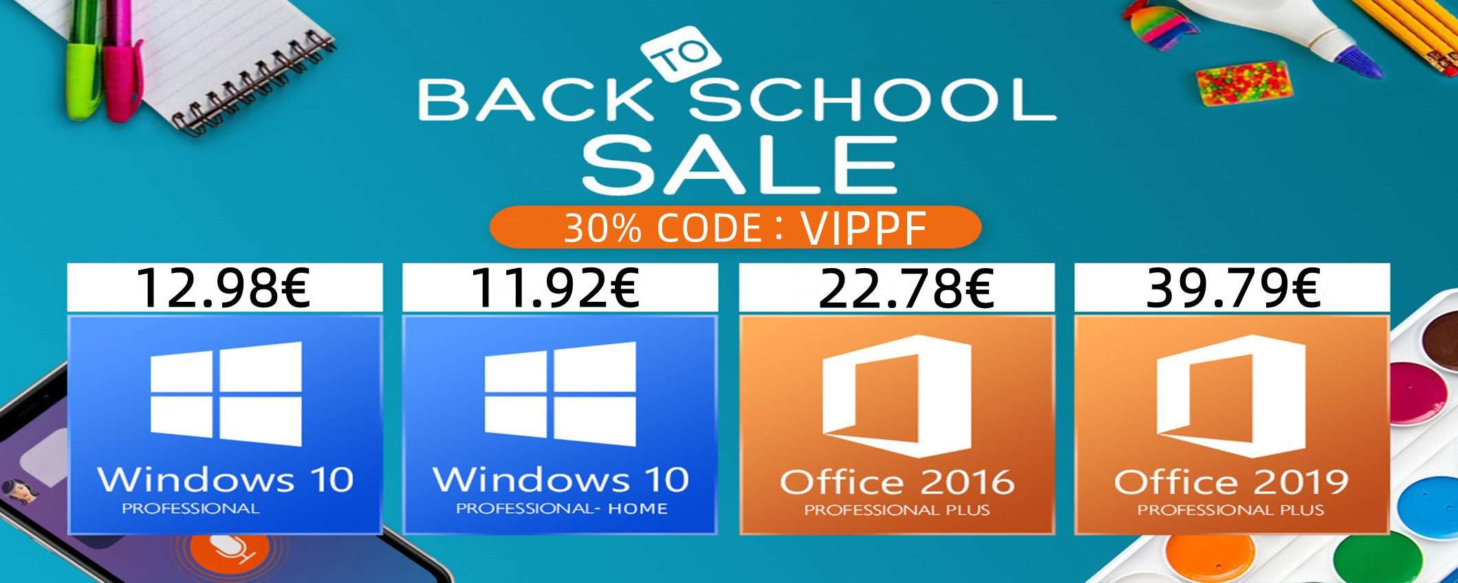 - Windows 10 PRO + Office 2016 Pro Plus Keys Lifetime a 32.97 Euro dopo il 30% di sconto con coupon (VIPPF)