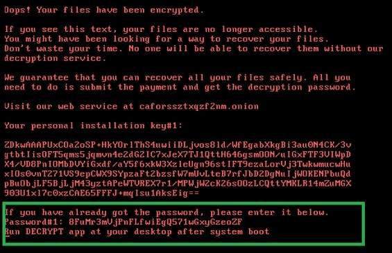 La seconda “vulnerabilità” del nuovo ransomware è più complicata da sfruttare a scopo di recupero, e consiste nell’uso della “Password#1” visualizzata durante l’avvio di un sistema infetto: in questo caso è in teoria possibile bypassare la schermata iniziale per procedere al boot del disco , anche se i file continueranno ad essere criptati; qualora il sistema infetto non venisse riavviato, dicono infine i ricercatori, esiste la remota possibilità di un recupero della password usata per la codifica dei dati direttamente dalla RAM.