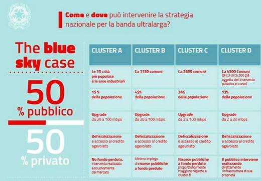 In generale, nel piano del Governo è prevista una suddivisione in quattro cluster, che saranno sottoposti a diverse agevolazioni o strumenti di partenariato atti a intercettare i bisogni specifici; come spiega il ministro dello sviluppo Federica Guidi “la scelta è di lasciare agli operatori la scelta della tecnologia più efficace, modulando il sostegno pubblico”: essi, quindi, “decideranno con un meccanismo virtuoso come fare il loro piano di infrastrutturazione”.