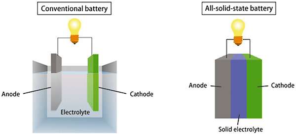 Facciamo riferimento all’immagine seguente, pubblicata da SPring-8, per meglio comprendere quale sia la differenza strutturale fra i due tipi di batterie, alla base dell’incremento prestazionale.