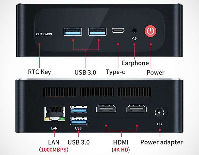 Il computer offre un design decisamente curato, grazie ad uno chassis interamente in metallo che presenta una generosa griglia forata nella parte superiore e due laterali. Queste agevolano la dissipazione del calore affidata ad un abbondante heatsink assistito da una ventola che, seppur piccola, riesce a mantenere una buona silenziosità. Ottimo quindi per l’utilizzo professionale, garantendo anche a pieno carico un’attività senza distrazioni. All’interno, ospita un processore AMD Ryzen 3 3200U dual-core con 4 thread ed una frequenza massima di ben 3,6GHz. Si tratta di una CPU a ridotto consumo energetico con un TDP base di 15W, ma regolabile tra i 12 e i 25 Watt per la massima flessibilità. Questa è supportata da 8GB di memoria RAM e un SSD da 256GB, il tutto completamente aggiornabile.