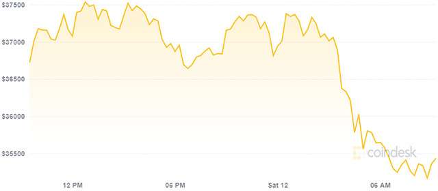 Nel momento in cui viene scritto e pubblicato questo articolo, la criptovaluta è scambiata a 35.478 dollari (fonte CoinDesk). Siamo molto lontani dal record storico di 64.829 dollari fatto segnare a metà aprile. Il primo dei grafici qui sotto mostra la variazione registrata nel corso delle ultime 24 ore.