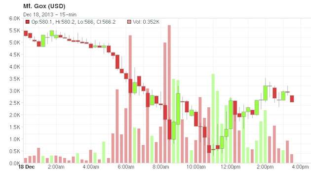Sembrano davvero lontani i tempi in cui un bitcoin valeva 1.200 dollari: la giornata del 18 dicembre si è aperta con una quotazione superiore ai 750 dollari che a un certo punto è crollata sotto quota 500 , per poi risalire restando comunque sotto ai 600 dollari . Una perdita significativa di valore sia in termini assoluti che percentuali, evidentemente legata alle massicce vendite operate dagli operatori asiatici che si vedono costretti a disimpegnarsi dal mercato virtuale dei bitcoin.