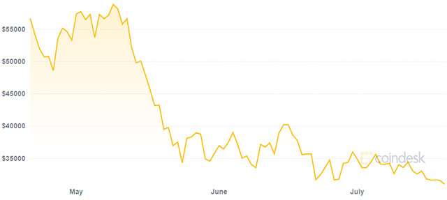L’impressione generale è però quella di un raffreddamento degli entusiasmi di inizio anno, complici anche le conseguenze delle strette al mining applicate dalle autorità in giro per il mondo, principalmente per ragioni legate alla sostenibilità. Secondo Patrick Heusser di Crypto Finance AG, intervenuto sulle pagine di CoinDesk, il declino potrebbe proseguire fino a quota 22.000 dollari.