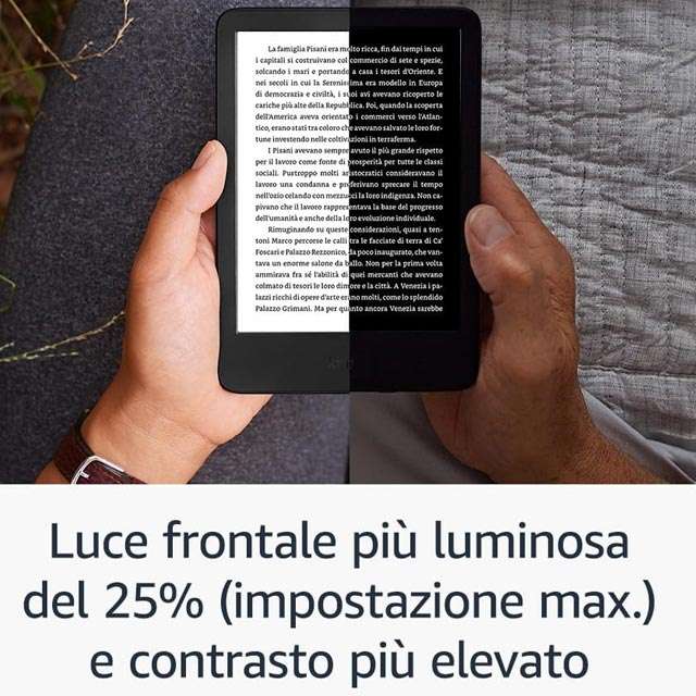I miglioramenti introdotti rispetto al modello precedente riguarda il design, con un peso ridotto a soli 158 grammi che permette di tenerlo comodamente nel palmo della mano (o in tasca), e il display che arriva a 300 ppi, per una leggibilità perfetta. Sono anche state incrementate le prestazioni, lo stesso vale per il rapporto di contrasto e la luce frontale. La batteria è in grado di fornire un’autonomia che arriva a sei settimane di utilizzo con una sola ricarica. Dai uno sguardo alla scheda completa per tutte le altre informazioni.