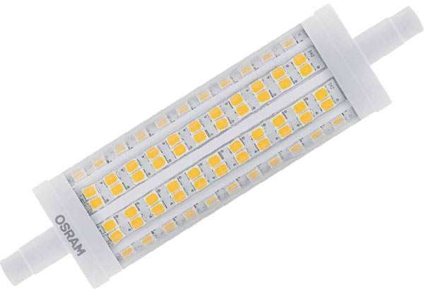 È compatibile con l’attacco R7s, caratterizzata da un basso consumo energetico (18 kWh/H) e offre un ciclo vitale dichiarato pari a 15.000 ore. La luce emessa è equivalente a quella di una lampadina tradizionale a incandescenza da 150 W. È inoltre del tutto priva di mercurio.