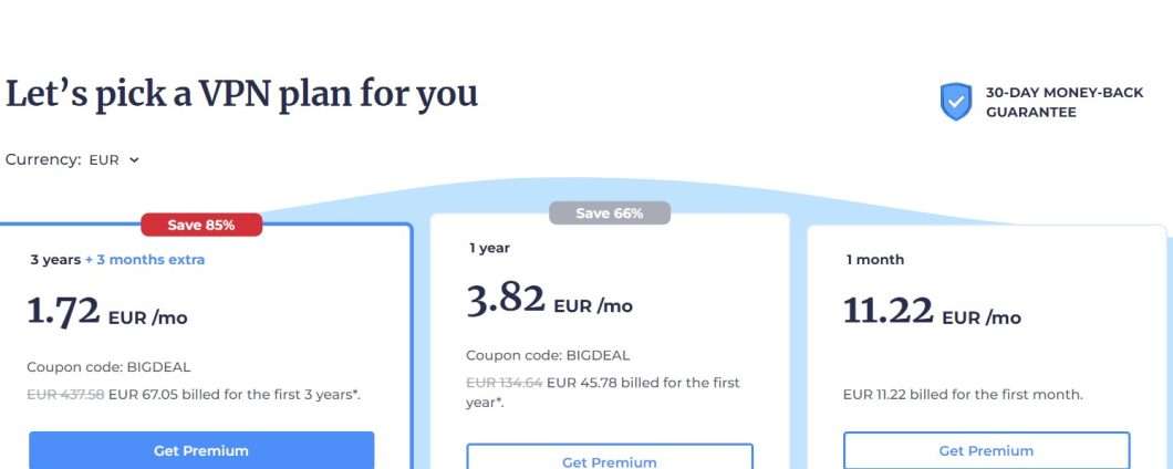 Il prezzo dell’abbonamento dipende dal piano che scegli. Per massimizzare il risparmio, ti consigliamo di abbonarti per due anni, al prezzo di 46,05€ al posto di 316,60€. In più, riceverai 6 mesi gratuitamente.