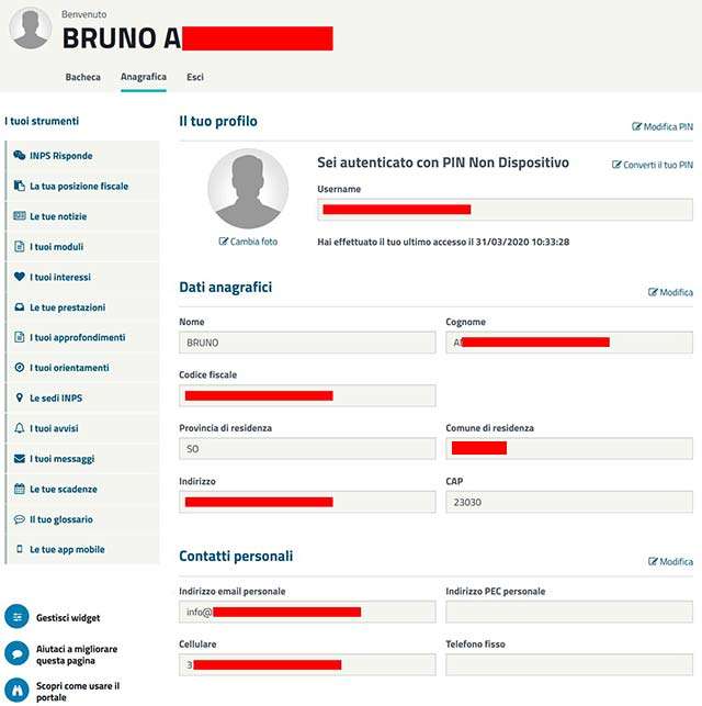 Bonus 600 euro: i dati di altri, modificabili, sul sito INPS?