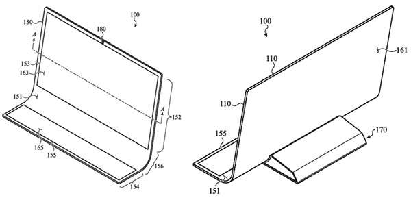 All’utente dovrebbe essere offerta la possibilità di modificare la curvatura del vetro in modo da regolare come meglio crede l’angolazione del pannello. Lo si potrà fare tanto da arrivare a richiuderlo, come visibile qui sotto. Potrebbe essere questa la risposta di Cupertino ai PC pieghevoli che i primi produttori dell’ecosistema Windows hanno già presentato.