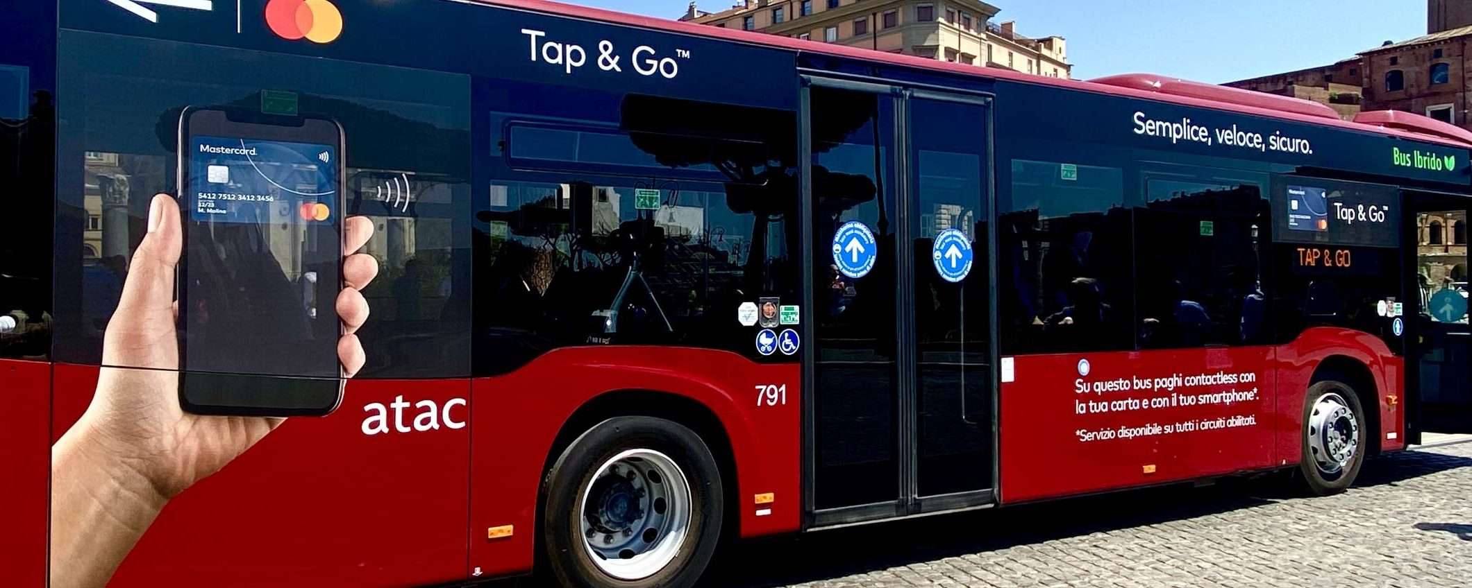 Il Comune di Roma ha annunciato l’avvio della sperimentazione del progetto, realizzato in collaborazione con Mastercard, che prevede l’uso del servizio Tap&Go sul bus della linea 51 che attraversa il centro storico. I passeggeri possono utilizzare carte contactless e dispositivi mobile per pagare il biglietto fino al 30 giugno 2022. Il servizio verrà esteso all’intera flotta di superficie a partire da ottobre 2022.