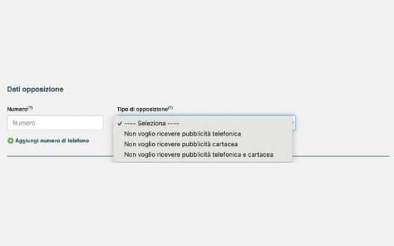 Successivamente, la cosa più importante, sarà quella di inserire il numero di telefono nel campo “Dati opposizione“. Il numero indicato rientrerà tra quelli che le aziende Call Center non potranno contattare a scopo di marketing. Si dovrà poi selezionare quale opposizione attivare: pubblicità telefonica, pubblicità cartacea o tutte e due. Nel caso l’utente fosse intestatario di più numeri, potrà aggiungerli selezionando la voce “Aggiungi numero di telefono” e procedendo in maniera identica per ogni numero di telefono inserito.