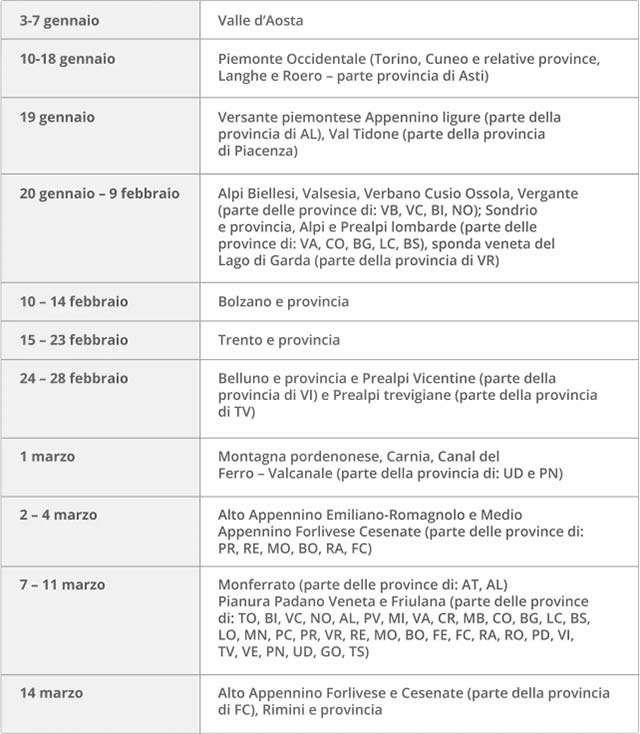 - Dal 3 gennaio 2022 in Valle d’Aosta;