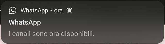 Come anticipato nei giorni scorsi, ecco i Canali di WhatsApp. La novità sta facendo il suo debutto anche in Italia e, in queste ore, molti stanno vedendo comparire sui display dei loro smartphone una notifica come quella mostrata qui sotto, accompagnata dall’avviso WhatsApp: i Canali sono ora disponibili