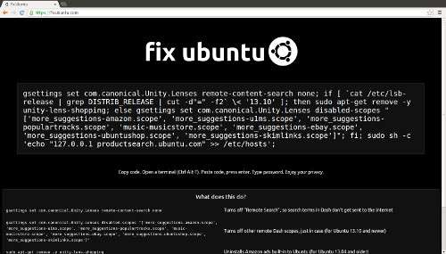 Michah Lee, sviluppatore e attivista in forze ad EFF, ha assemblato poche stringhe di codice, approfittando proprio della natura open source di Ubuntu. Poche righe da copiare nel terminale per evitare che ogni ricerca effettuata nell’interfaccia Dash venga venduta da Canonical a terze parti , un aggiustamento per rimediare a quello che EFF stessa aveva definito un vero e proprio attentato alla privacy. Lee ha riversato queste istruzioni su un sito personale, FixUbuntu.com .
