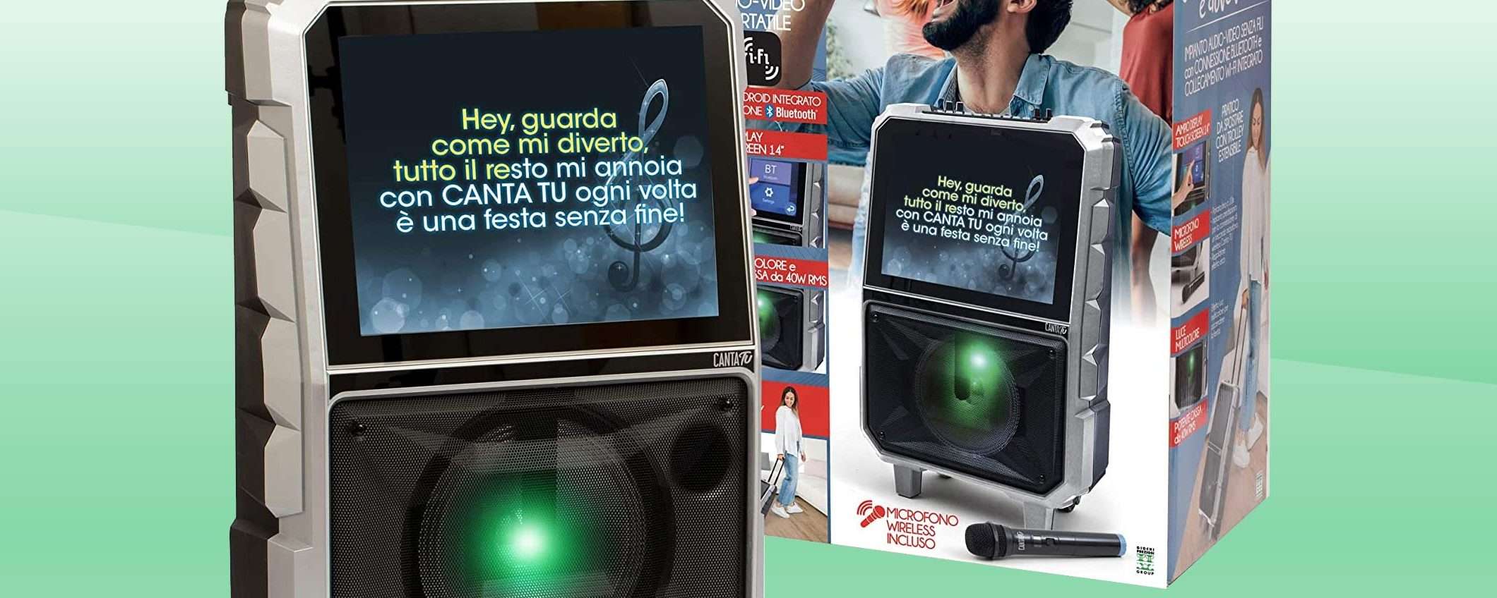 In questo momento, la nuova versione del Canta Tu Karaoke di Giochi Preziosi, è in vendita su Amazon al prezzo finale di 299 euro invece di 349 euro, con uno sconto di 50 euro rispetto al listino. La disponibilità è immediata, con spedizione gratuita a domicilio in un paio di giorni: se lo ordini subito, potrai stonare in compagnia già nel ponte dell’Immacolata.