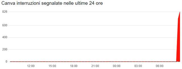 Canva è down. Come testimoniato dai tanti feedback inviati a Downdetector, il servizio dedicato ai progetti grafici è irraggiungibile. Le prime segnalazioni degli utenti sono giunte poco dopo le ore 8:00 di questa mattina, lunedì 26 maggio 2025, facendo segnare ben presto un picco, come mostrato dal grafico qui sotto. Aggiorneremo questo articolo con tutte le novità, non appena disponibili.