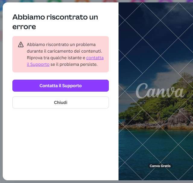 Il down interessa quasi tutte le funzionalità di Canva: dal login alla creazione di nuovi account, fino alle operazioni di editing e l’upload dei contenuti.