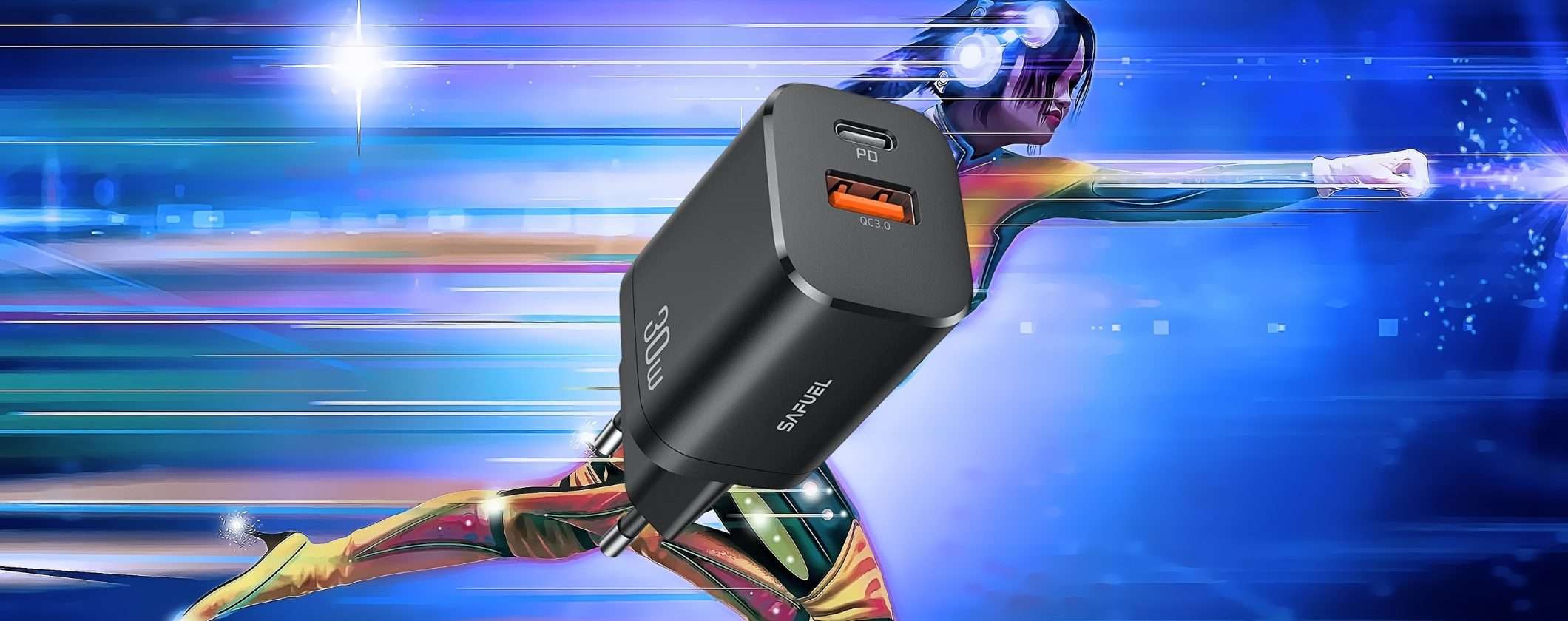 Caricabatterie da 30W SAFUEL: ricarica velocissima per qualsiasi dispositivo