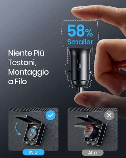 Il caricabatteria da Auto targato INIU è quindi una soluzione che potrebbe far comodo a ognuno di noi, specialmente se il prezzo in offerta è così basso. Puoi infatti acquistarlo su Amazon ad appena 11,03 euro, approfittando di uno sconto del –15%.