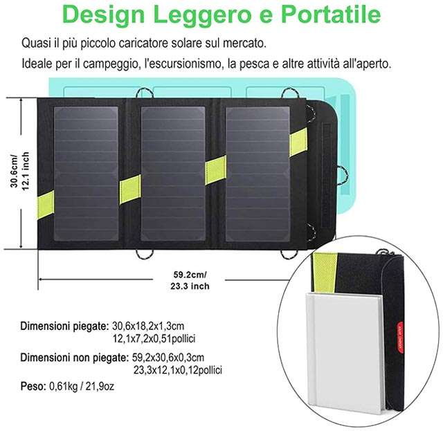 È perfetto in viaggio, ad esempio in campeggio o nelle camminate, ma può essere posizionato anche negli ambienti esterni domestici. Il funzionamento si basa sulla tecnologia esclusiva SolarIQ che può regolare automaticamente la corrente e la tensione per ottenere le massime prestazioni in base a ogni utilizzo. Fornisce la corrente più veloce possibile fino a 2 A per porta oppure, in alternativa, un totale di 3 A alla luce solare diretta. Per tutti gli altri dettagli, consulta la scheda del prodotto.