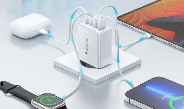 Questo caricatore permette allora di ricaricare fino a quattro dispositivi contemporaneamente vista la presenza di due porte USB-C e due porte USB-A. Operazione che svolgerà a velocità importanti dato che la porta USB-C arriva a 20W, dandoti l’opportunità di caricare uno smartphone di ultima generazione al 60% in appena 30 minuti.