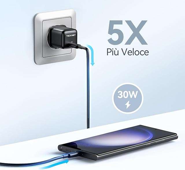 TECKNET: l’offerta sul caricatore USB-C da 30 W
