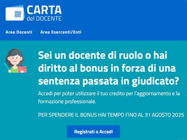 Questo il messaggio che compare sul sito istituzionale dedicato, specificando che si tratta di un benefit riservato ai soli docenti di ruolo.