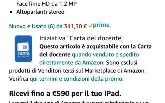 A questo punto riceverai un messaggio email contenente uno o più codici Amazon dal valore totale dell’importo indicato nel buono Carta del Docente. Potrai ora sfruttare i codici per completare l’acquisto dei prodotti preferiti. Questi dovranno però includere il badge “Carta del Docente” nelle descrizione generale. Nel caso in cui l’importo da pagare sarà superiore al credito a disposizione, potrai tranquillamente aggiungere la differenza utilizzando una qualsiasi carta di pagamento.