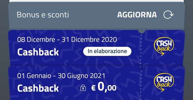 Stiamo aggiornando il Cashback al nuovo periodo: tornerai presto a vedere qui i tuoi rimborsi e le tue transazioni.
