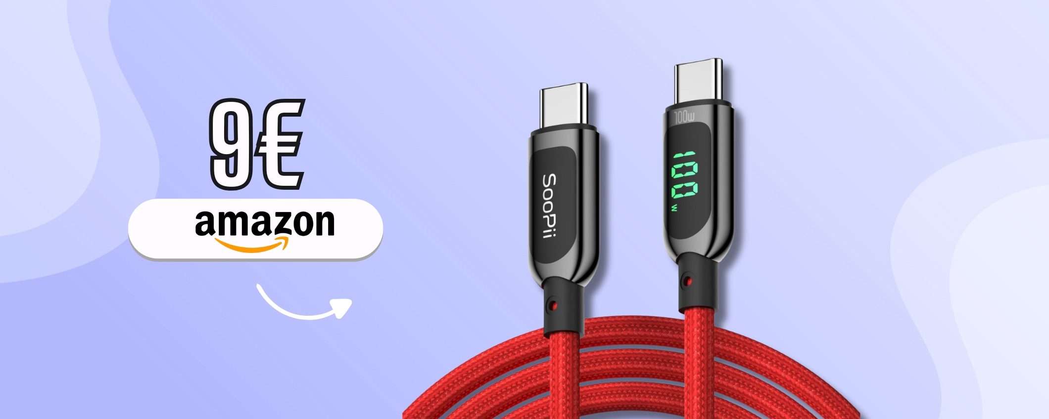 Il cavo USB C USB C con display integrato è in vendita su Amazon a soli 9,40€. Collegati subito e aggiungilo al tuo carrello con lo sconto del 14%, finalmente controlli a quanto caricano i tuoi devices.