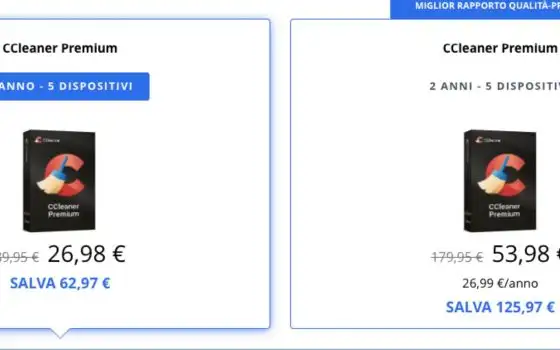 Per chi desidera un abbonamento più lungo, è disponibile anche il piano CCleaner Premium da 2 anni, indicato come l’opzione con il miglior rapporto qualità-prezzo.