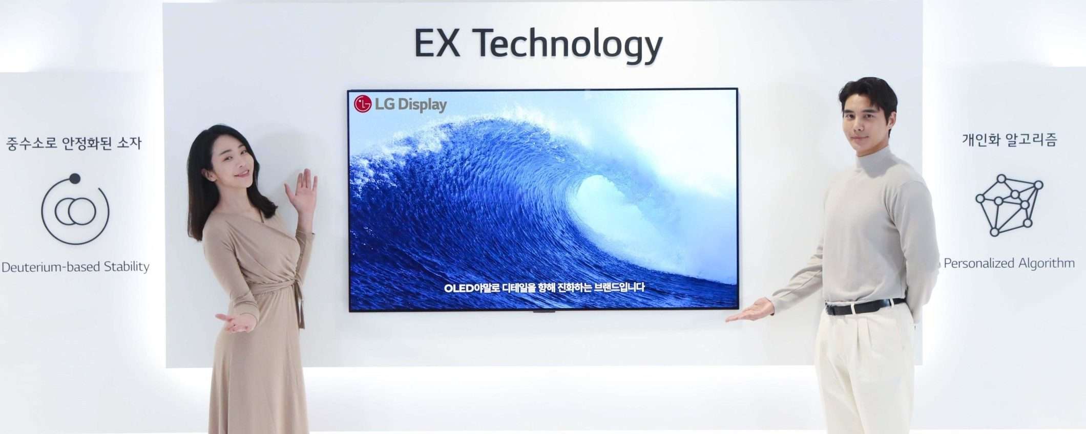 I nuovi OLED EX offrono invece una maggiore luminosità (fino al 30%), grazie a composti in deuterio e avanzati algoritmi di image processing. LG Display ha convertito l’idrogeno degli OLED in deuterio stabile che successivamente è stato applicato ai pannelli. Il composto ottenuto emette più luce mantenendo un’elevata efficienza.