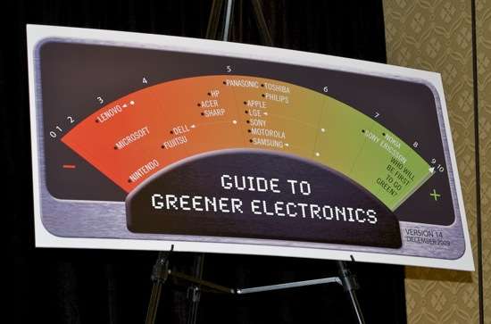 Sugli scudi dell’aggiornamento di dicembre della classifica ci sono due produttori di telefonia mobile, Nokia e Sony Ericsson: a loro appannaggio il primo e secondo posto, con l’azienda finlandese in particolare ormai stabilmente al comando. Menzione speciale per Apple, primo produttore mondiale ad essersi assicurato la palma di un’offerta totalmente priva di PVC e ritardanti di fiamma inquinanti (BFR), ma in questo senso ci sono anche HP e Acer che stanno annunciando novità interessanti. Bacchettate per LG, Lenovo, Dell e Samsung: non sono state in grado di mantenere le rispettive promesse in fatto di ecologia , finendo per ricevere il biasimo dell’organizzazione ecologista.