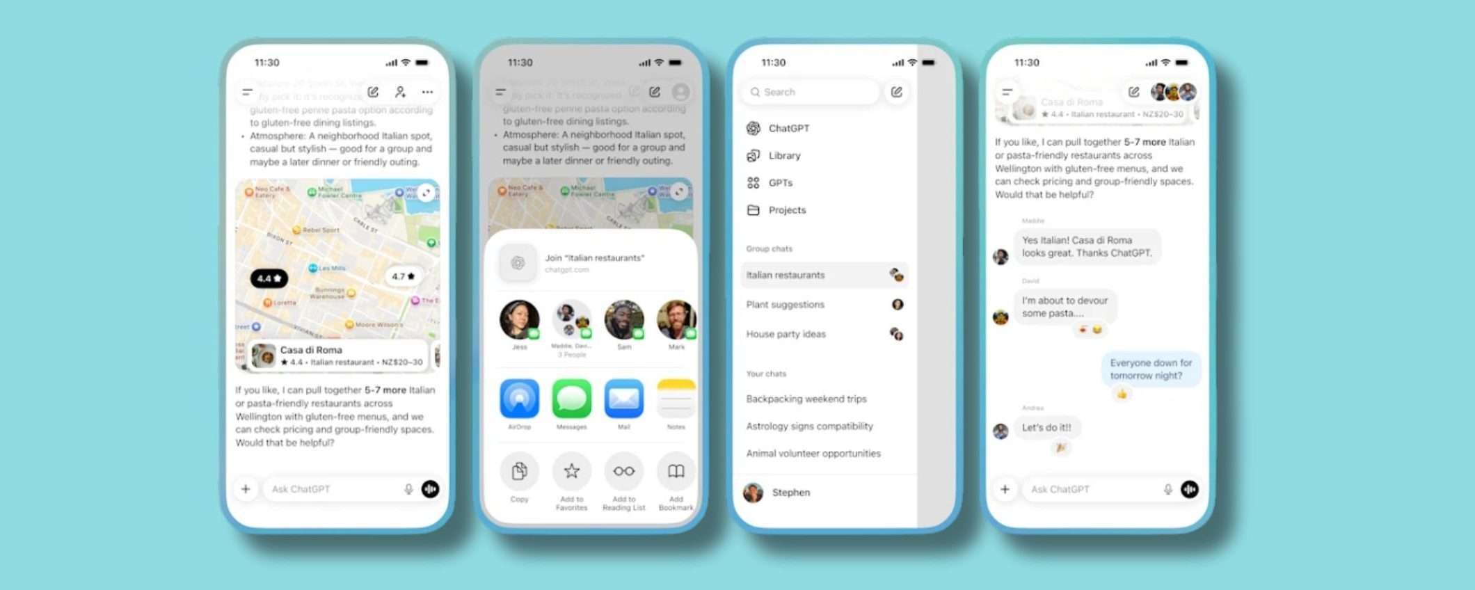 ChatGPT non sarà più un assistente solitario che risponde in conversazioni private. No, diventerà sociale, collaborativo, un posto dove amici, familiari e colleghi si ritrovano per pianificare, creare e decidere insieme. L’azienda ha annunciato il lancio globale delle chat di gruppo per tutti gli utenti dei piani Free, Go, Plus e Pro, una settimana dopo averle testate in Giappone e Nuova Zelanda. Perché sì, anche ChatGPT sta diventando un social network.