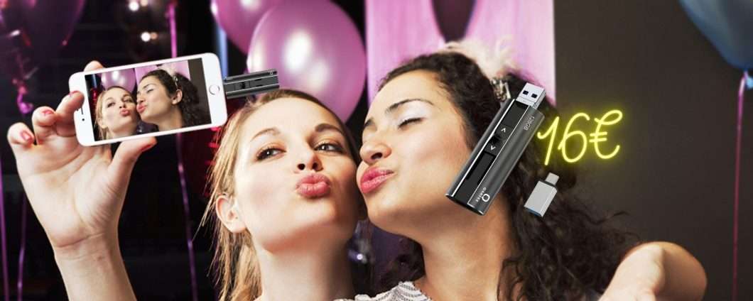 Ovviamente ti consigliamo di essere veloce perché a questo prezzo sta andando a ruba. Grazie a questa pen drive intelligente hai 4 dispositivi in 1. Dotata di tecnologia USB 3.0 ottieni anche velocità e stabilità durante il trasferimento dei dati oltre che in lettura e scrittura. Estraendo i connettori seguendo le istruzioni della foto, ottieni un attacco Lightning per iOS, MicroUSB per Android, USB-A per PC, Type-C per Android e MacBook.