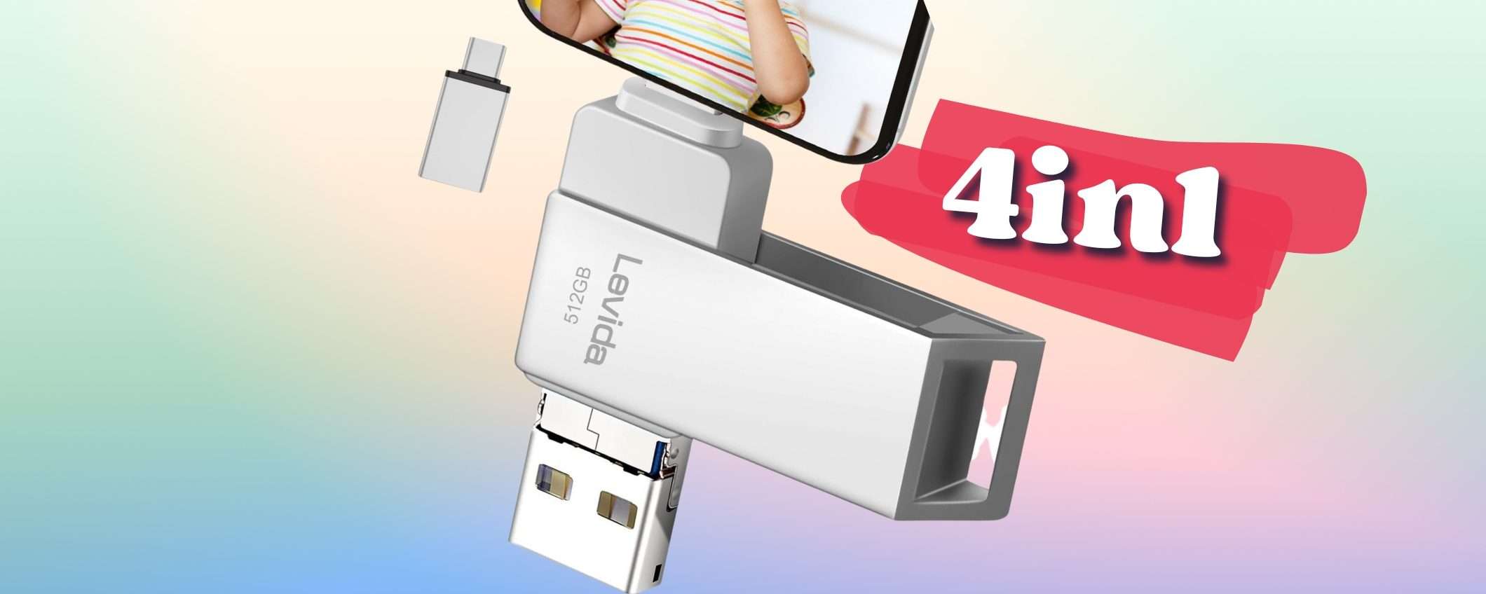 Allora, che ne dici? Se sei interessato collegati al volo su Amazondove puoi acquistare la tua Chiavetta USB 512GB 4 in 1 a soli 34,68€ con uno sconto del 28% ora in corso.
