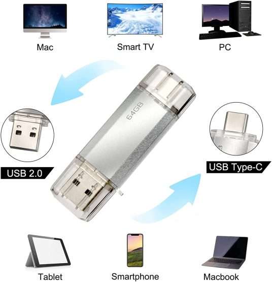 Una chiavetta USB 2 in 1 che puoi utilizzare un po’ ovunque tu voglia e soprattutto in una sola mossa e senza uscire pazzo. Con una uscita USB classica e una USB di tipo C, praticamente la metti anche sullo smartphone e la utilizzi come cloud portatile. Niente più abbonamenti.