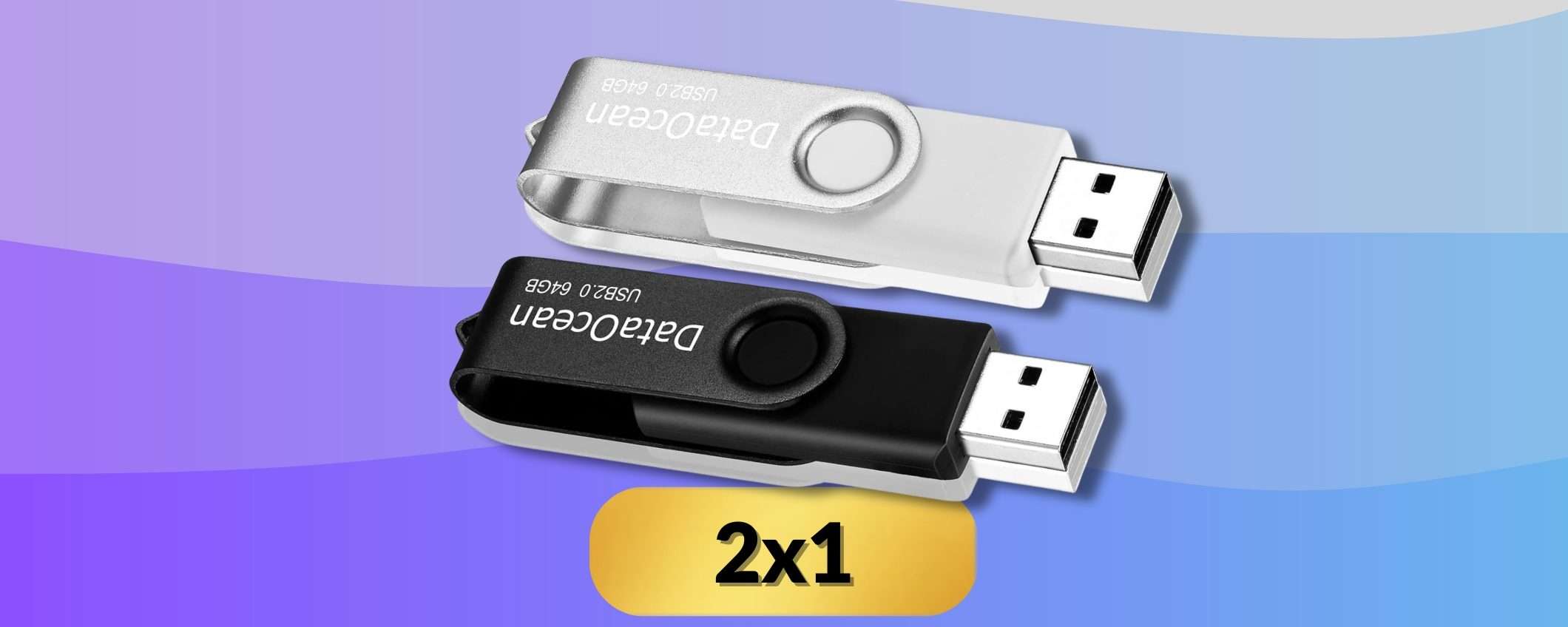 Ad appena 10,99€ su Amazon, le due chiavette USB di DataOcean da 64GB sono disponibili a prezzo speciale. Se le vuoi acquistare approfitta dello sconto del 15%.
